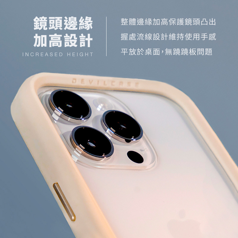 ◉鏡頭加高設計:整體邊緣加高,保護鏡頭凸出。平放桌面,無蹺蹺板問題。握處流線設計,保持使用手感。