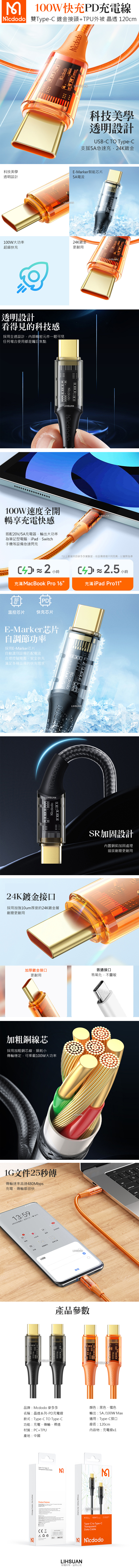 ●名稱:晶透系列-PD充電線