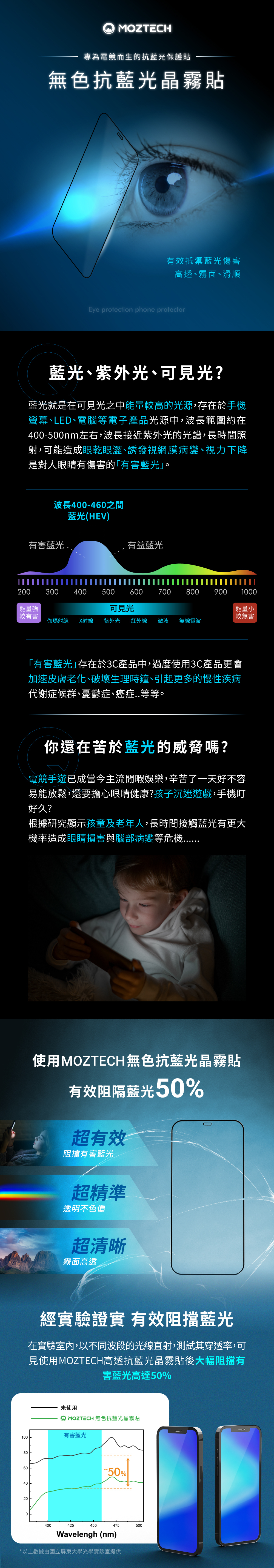 ◐|實驗室認證 有效阻隔415nm-455nm的藍光阻隔率達50%