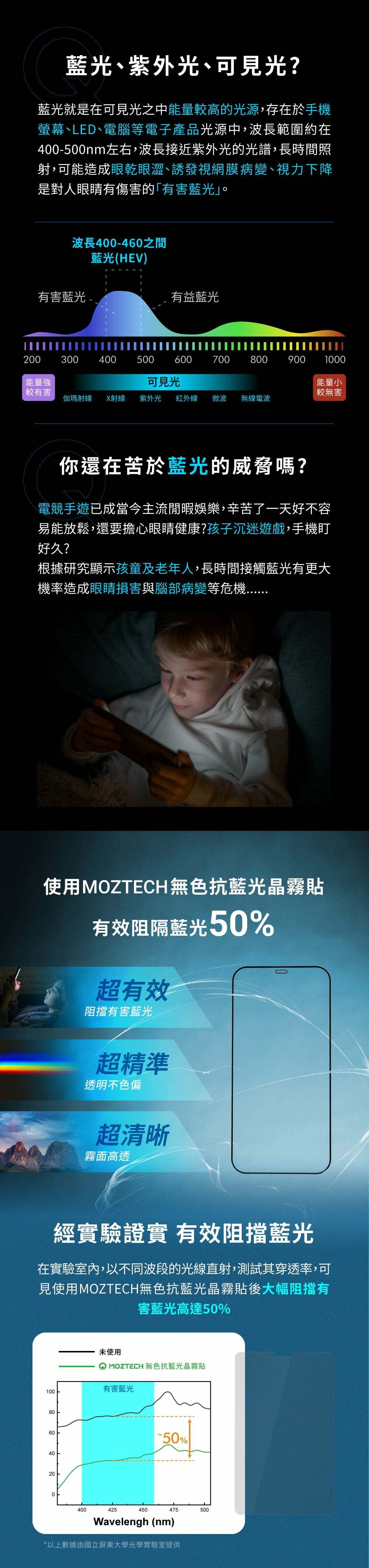 ◐|實驗室認證 有效阻隔415nm-455nm的藍光阻隔率達50%