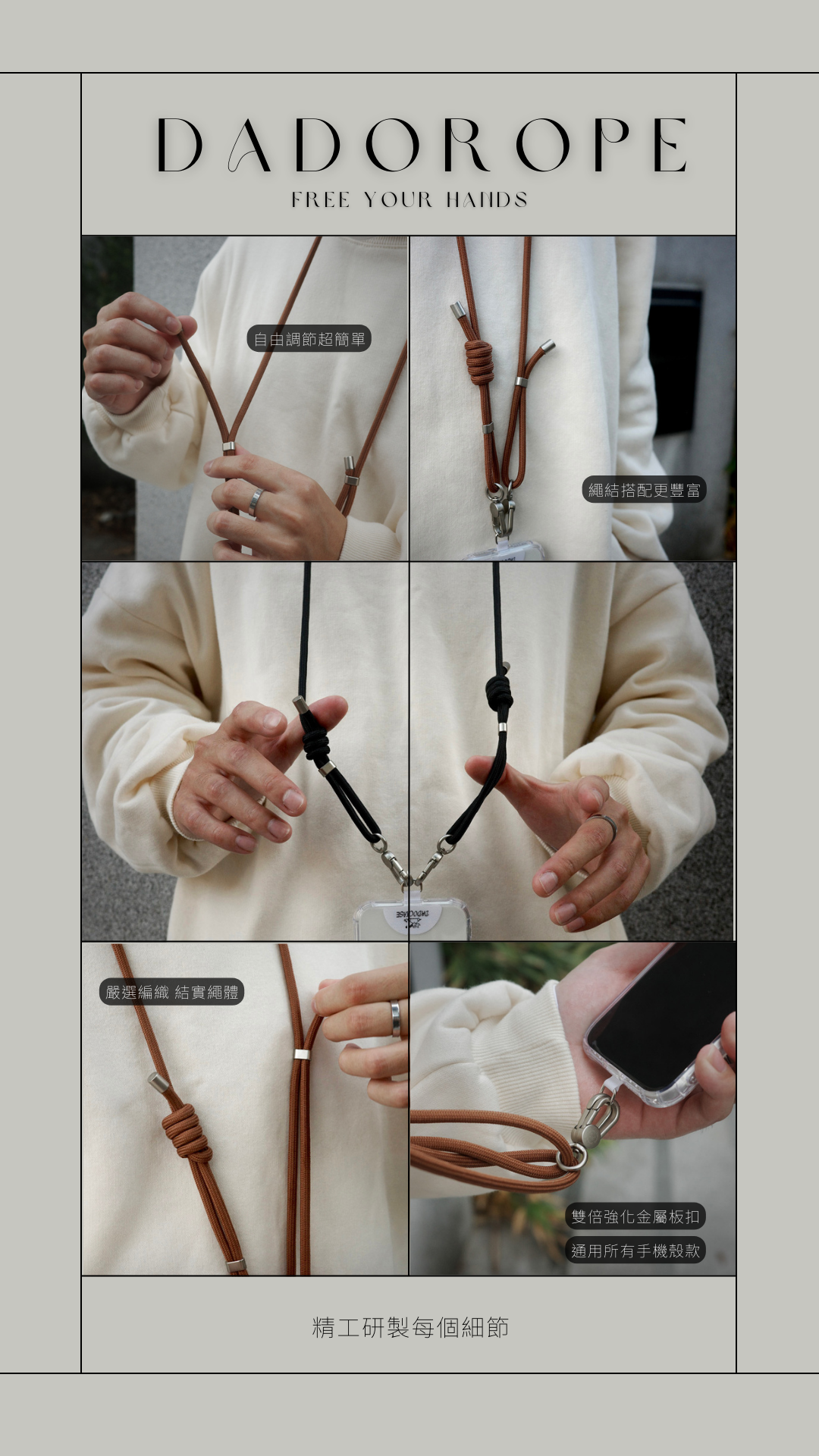 - 繩索皆配備強化五金零件,通用雙扣或單扣。